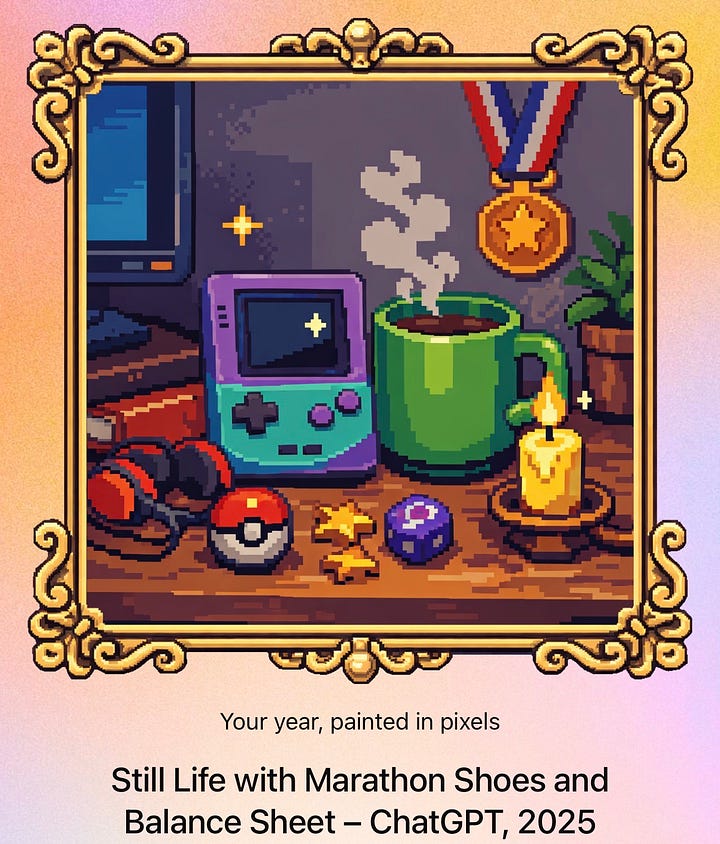 I am closing out my 2025 records and according to my ChatGPT Unwrapped, I can run spreadsheets for miles, or I can miles for spreadsheets.