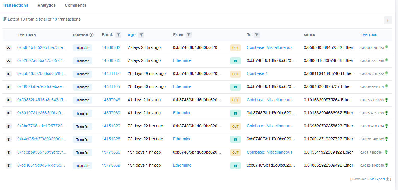 Note: I am not a subscriber to continuous data logging, so the data presented requires some level of analytic deduction. Refer to the Ethereum Blockchain Transactional Logs here. - Note on a Note: This only includes transfers, but not daily activity, and transfers initated by me irregularly.