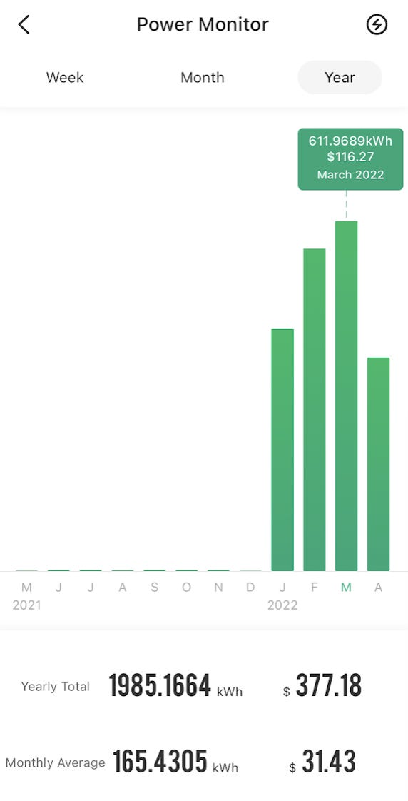 Source: Minerstat Energy Consumption, corroborated with VeSync Smart Plug Data (above) Meter and Southern California Edison Energy Billing