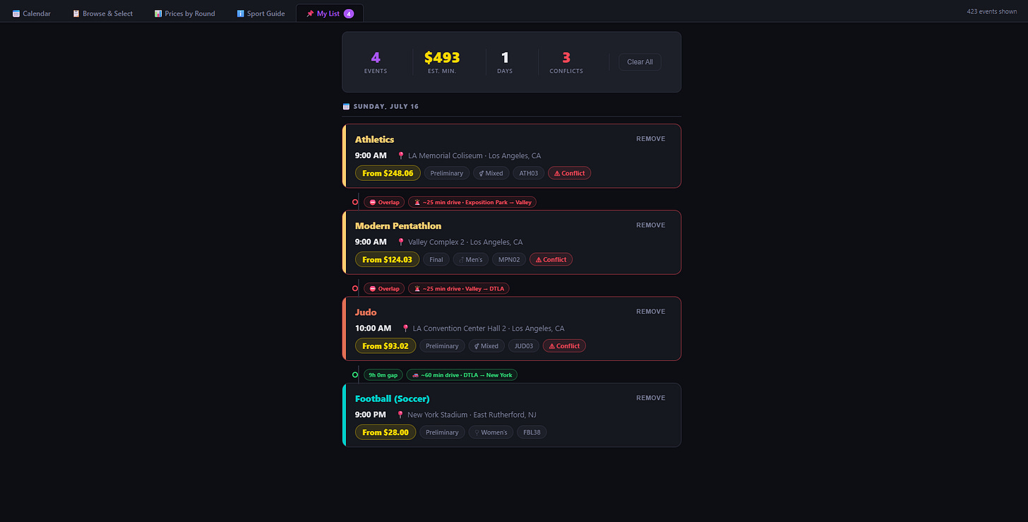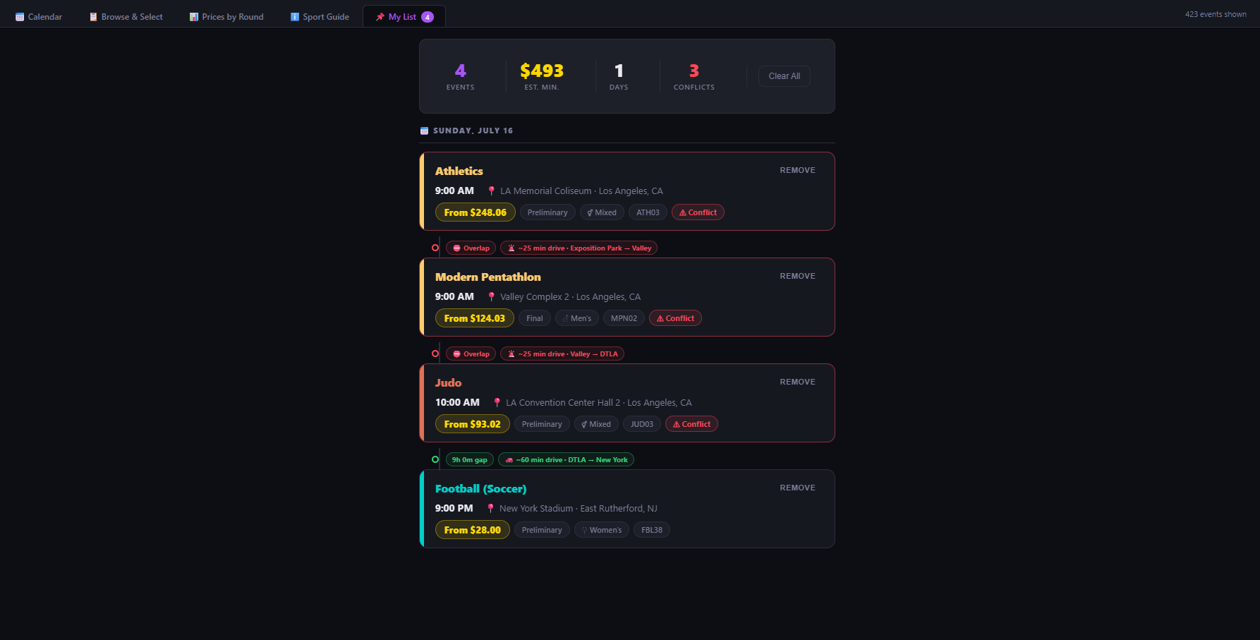 I used Claude to make a planner for the LA 28 Olympic Tickets